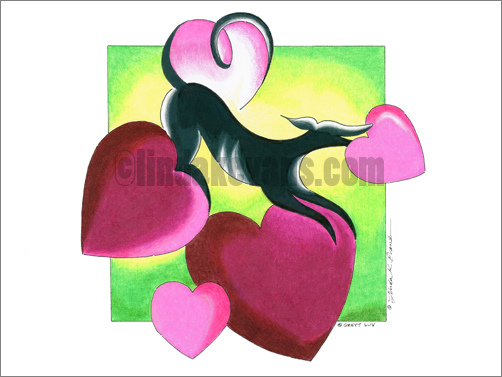 A long time love affair with the greyhound has brought Linda’s art full circle. She shares her life with her husband Ron and their two very special brother and sister greyhounds, Leland and Emilee.